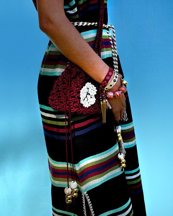 LITTLE CROSS-BODY CROCHET BAG - MAROON SPARKLE