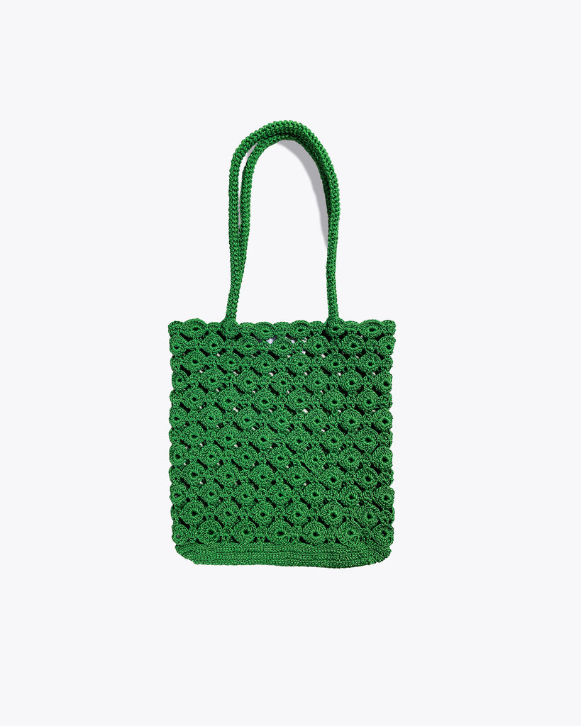 Unlined and summer fresh. Lightweight but strong and perfectly sized for a book, sunnies and phone. Made from a hard-wearing acrylic yarn that's vibrant in colour and fade-proof.