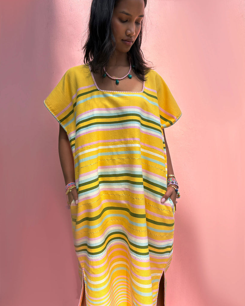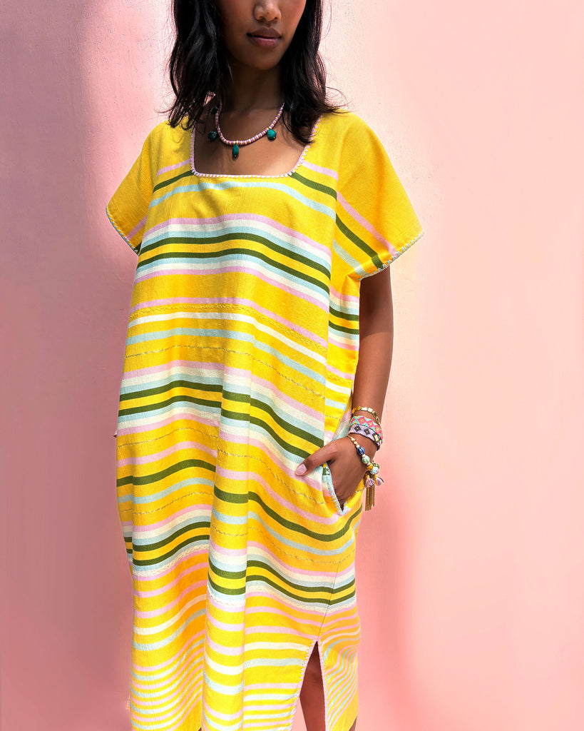 The huipil is a traditional garment that's been worn by the women of Mexico and Central America for generations. Adorned with exquisite shoulder brocades this is a striking piece for your summer wardrobe!