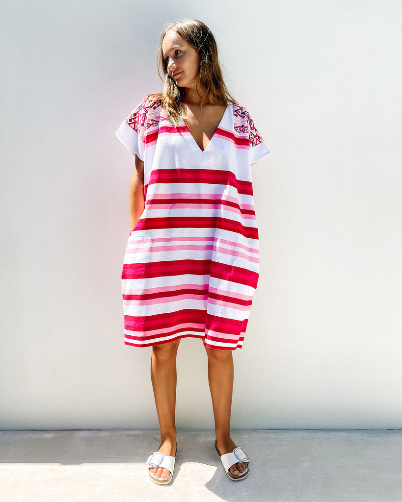 This mid-length is great for those who like something in between. It's lovely and loose and easy to throw on as a cover-all kaftan.