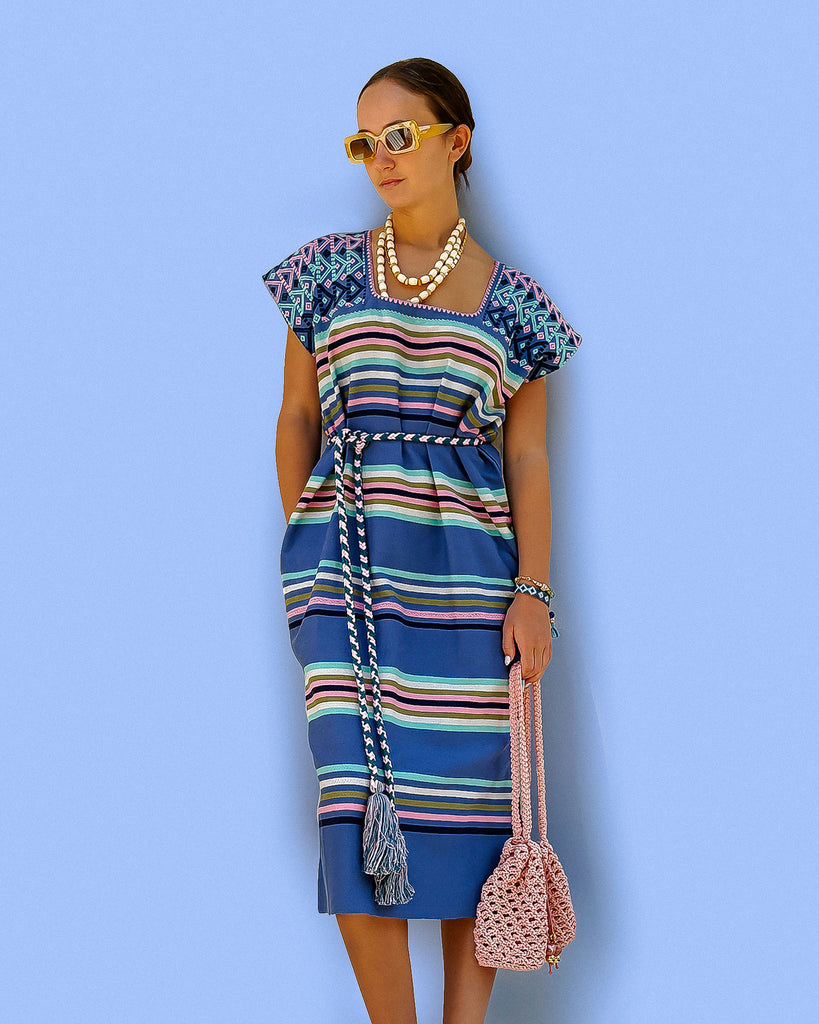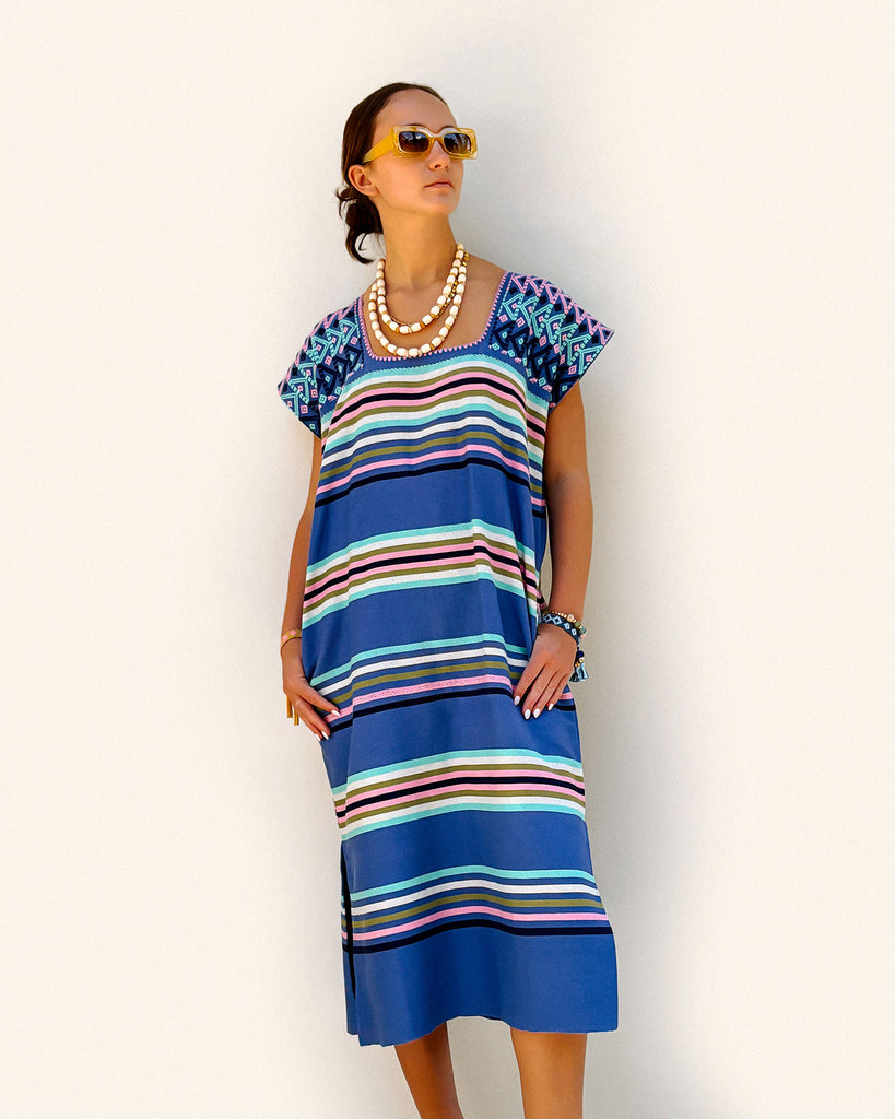 The huipil is a traditional garment that's been worn by the women of Mexico and Central America for generations. Adorned with exquisite shoulder brocades this is a striking piece for your summer wardrobe!