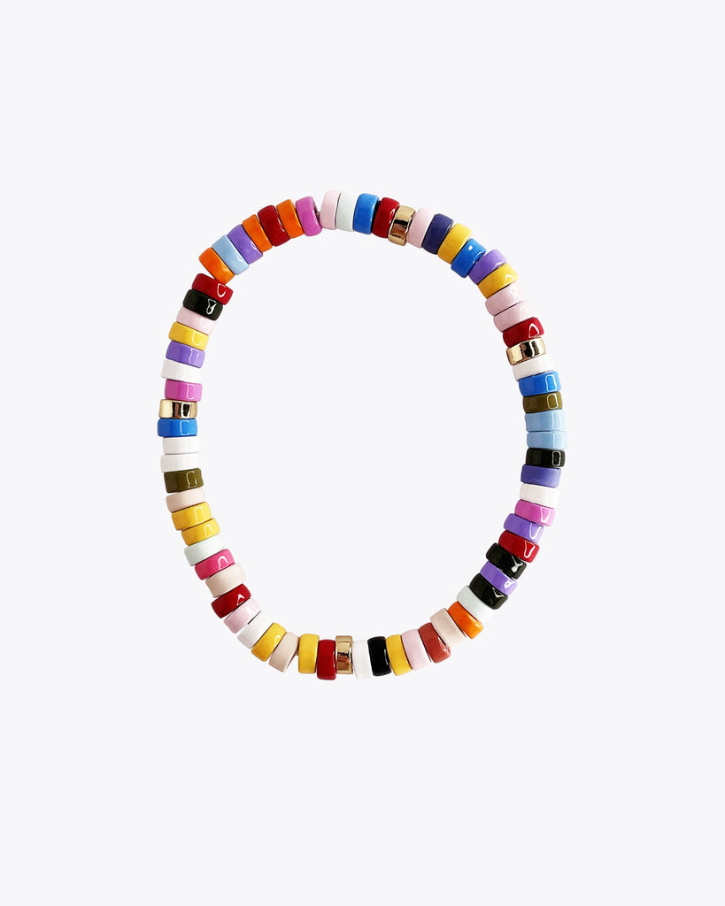 Add easy pops of colour to sun-kissed skin with our elasticated enamel bracelets. Double the fun with two! Each bracelet is made to order and the colours are similar but not exactly like the picture.
