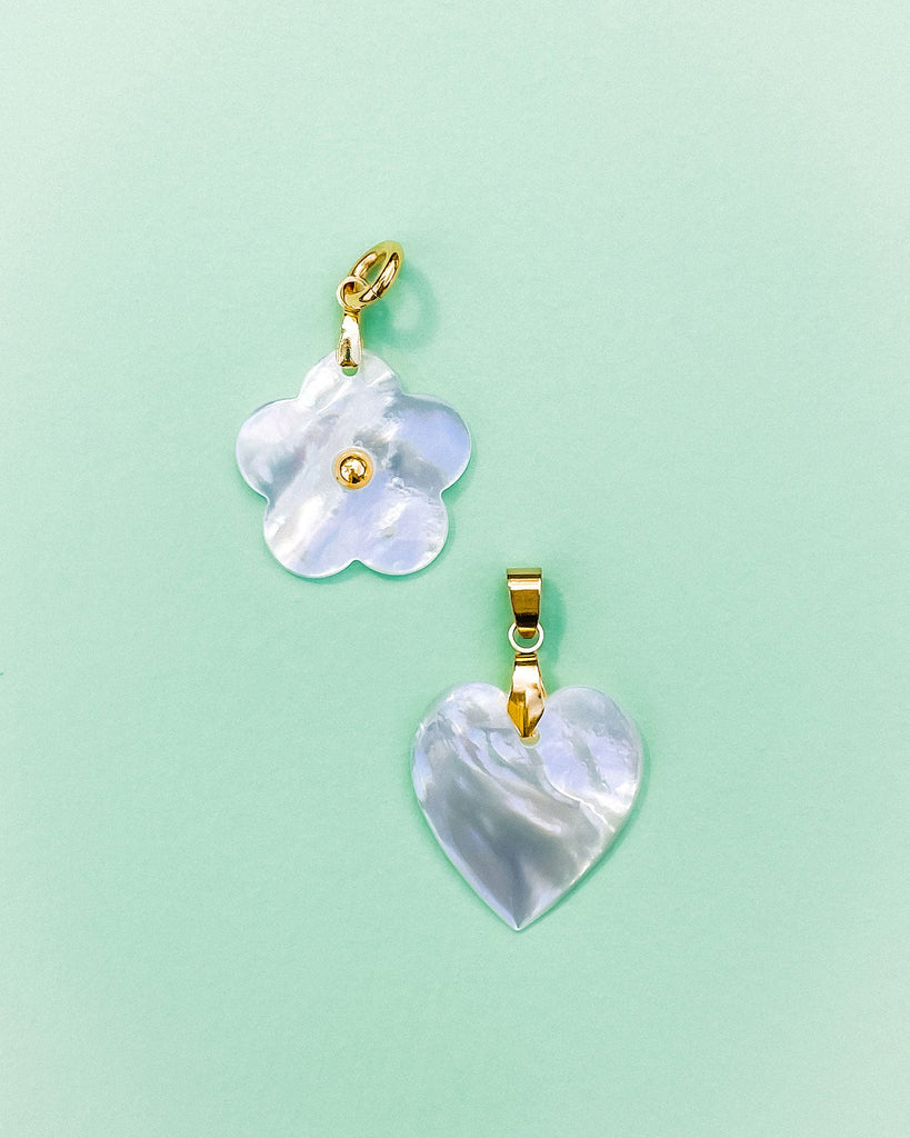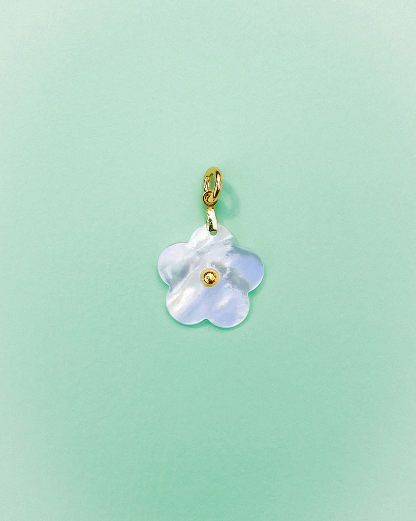 Carved in a glossy Mother of pearl this little daisy pendant is designed to clip onto our new chains but works just as well threaded on any fine chain. Lovely layered with the tassel pendant.